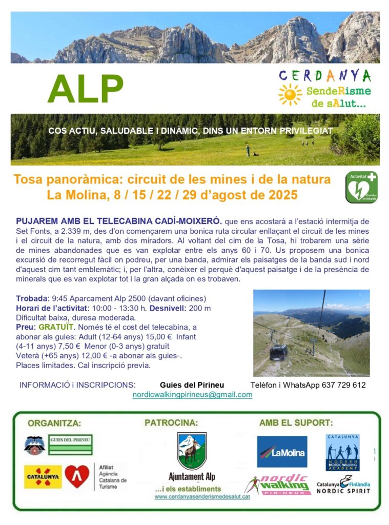 Agenda, Esports ALP – CERDANYA SENDERISME DE SALUT 01/08/2025 - 31/08/2025 Programa d’activitats Alp, Cerdanya Senderisme de Salut. < Entrada AnteriorEntrada Posterior >